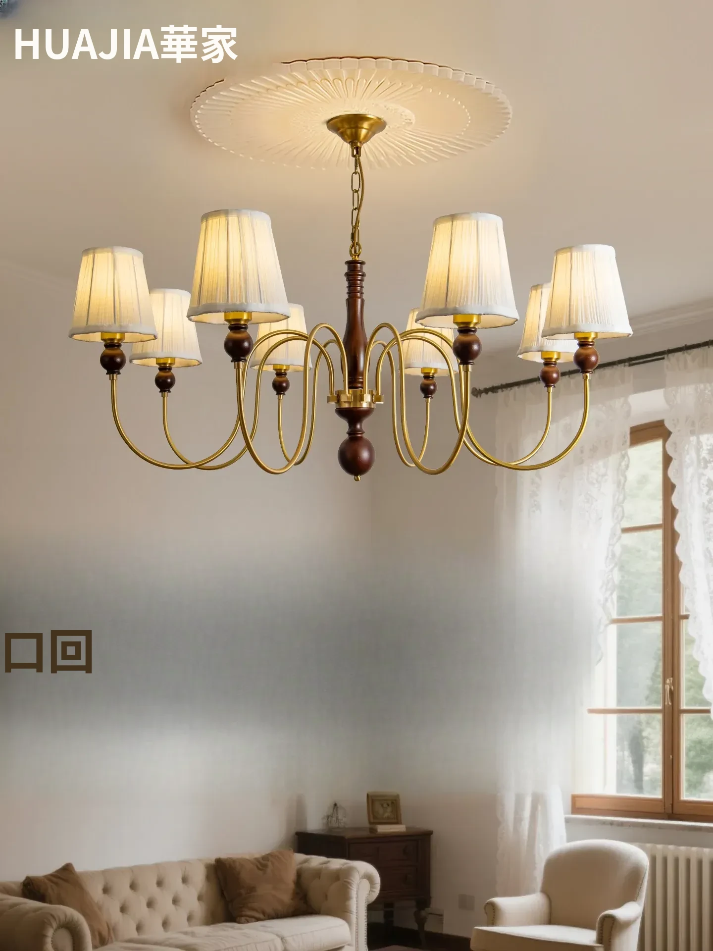 フランス風アンティーク全銅シャンデリア - レトロな雰囲気を演出する寝室用シャンデリア。アメリカンシンプルデザインの布製シェードが、ダイニングルームにもぴったり!おしゃれで温かみのある空間を実現します。
