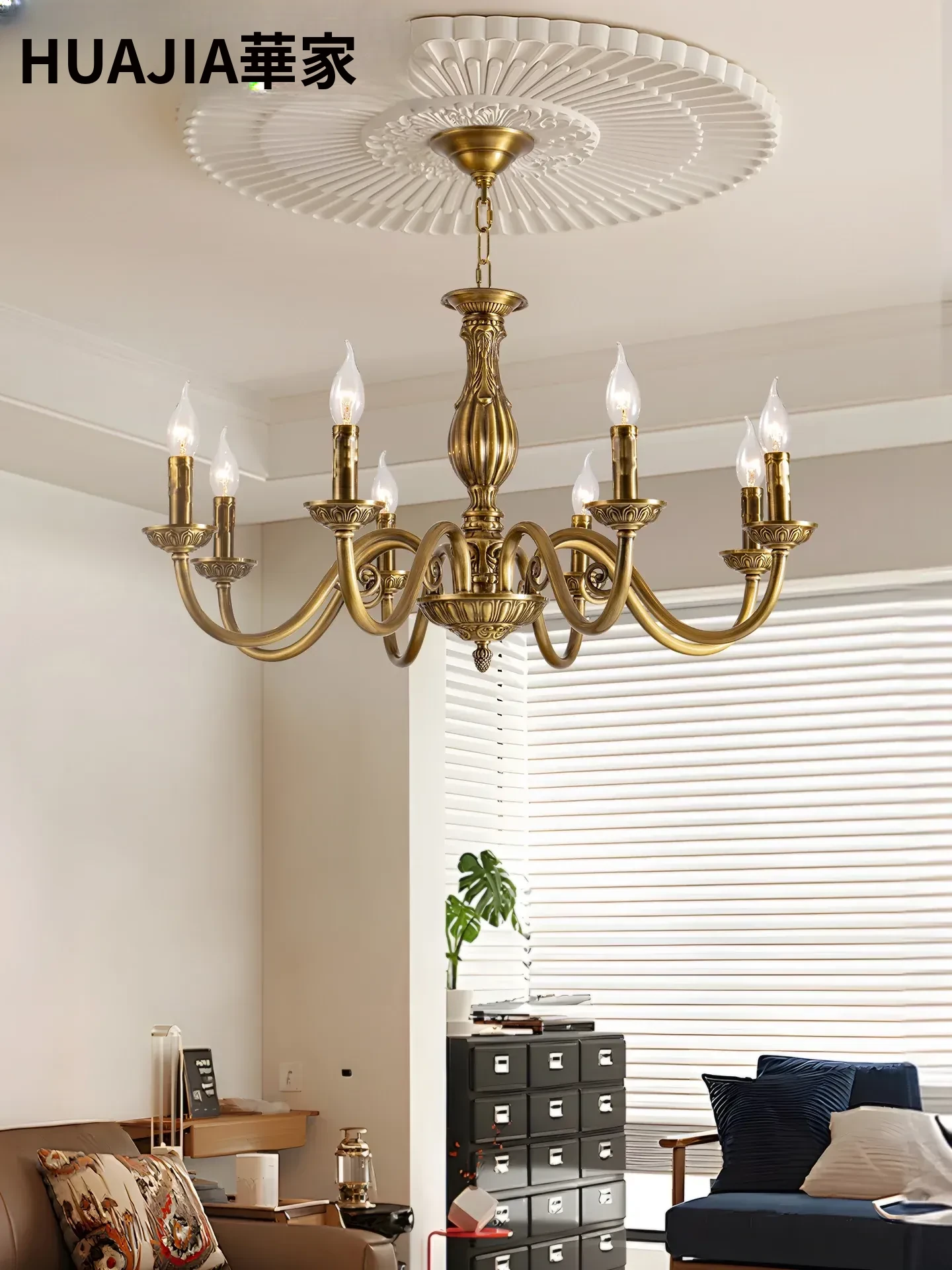 フレンチアンティークスタイルのシャンデリア、リビングルームにぴったり!アメリカンヴィンテージの全銅キャンドルライト、田舎風のレストランや寝室にも最適な魅力的な照明器具。