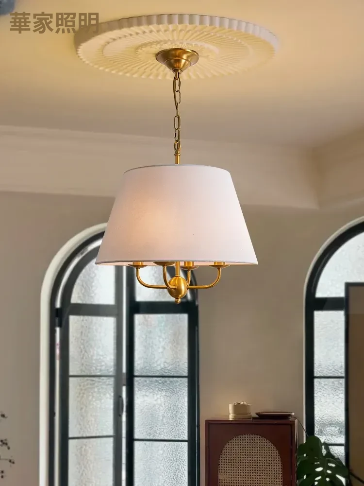 2025年新作 フレンチビンテージスタイルの純銅製シャンデリア - 高級感あふれるダイニング&ベッドルーム用ランプ、クラシックな布シェードで優雅な雰囲気を演出!