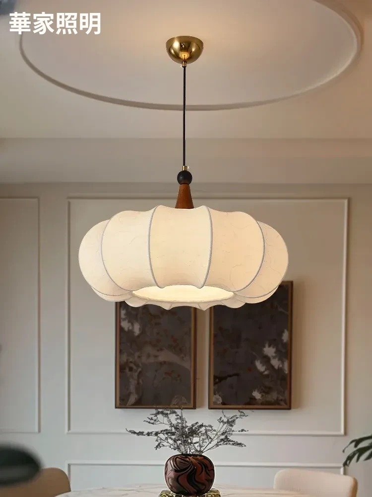 フランス風アンティークシーリングライト|寝室・ダイニング・書斎にぴったりなアメリカンラグジュアリー|高級感溢れるクリームカラーの布シェード&無垢材使用|おしゃれで温かみある空間を演出!