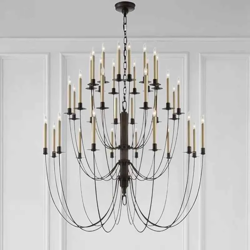 アメリカンレトロシャンデリア - リビングルーム、大きな照明、ヴィラやロフトにぴったり!フランス風のシンプルなキャンドルライト、階段照明にも最適。おしゃれで洗練された空間を演出します!