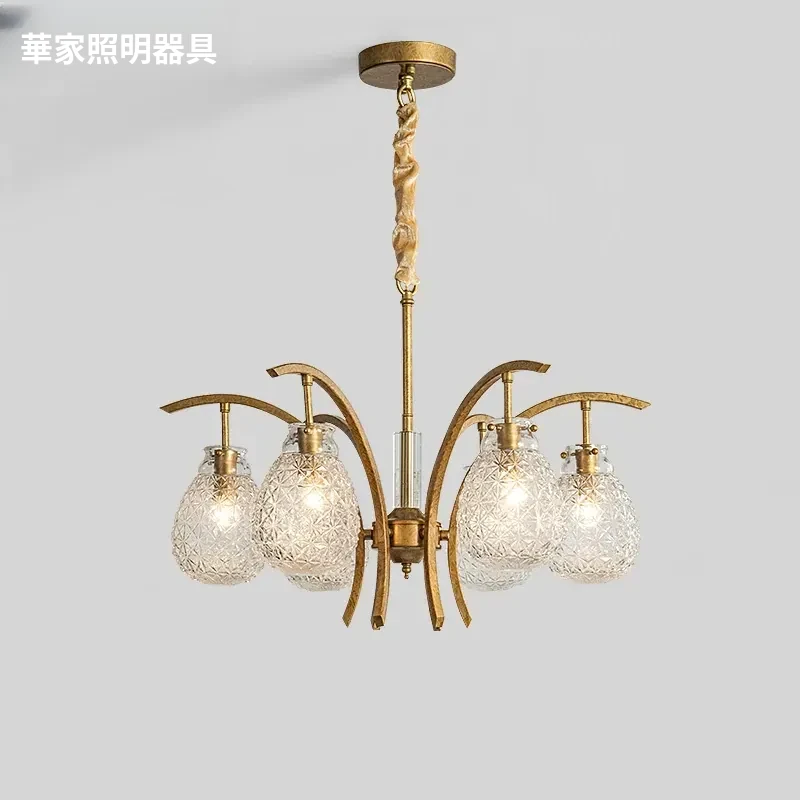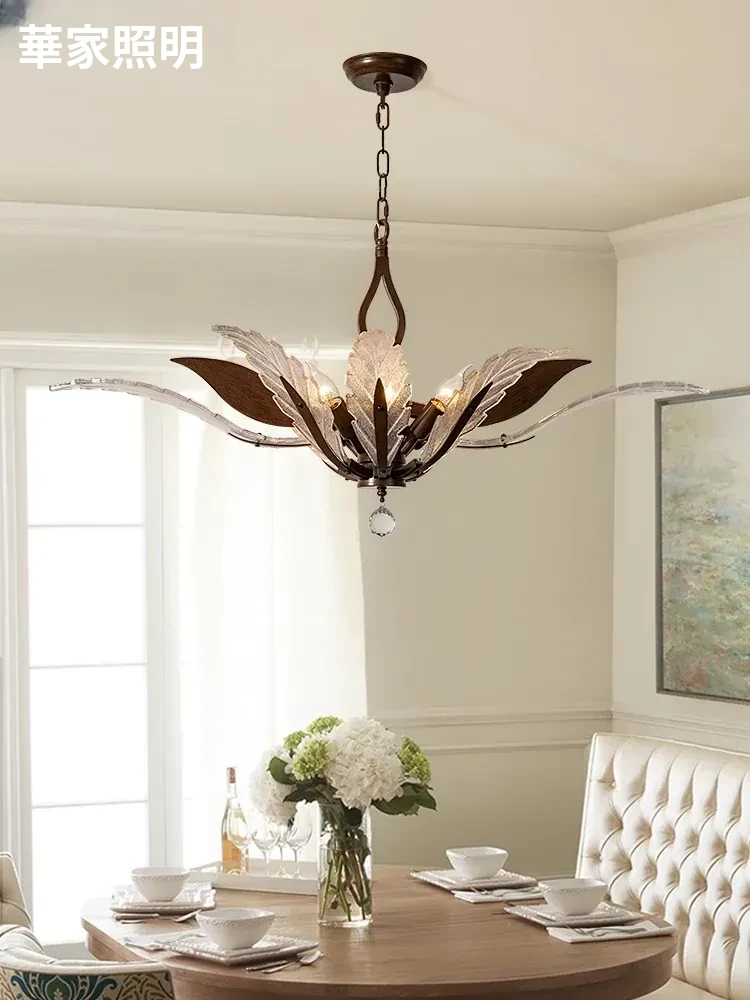 フレンチスタイルのヴィンテージシャンデリア、ガラスの美しいデザイン。アメリカンヴィンテージのファッショナブルでシンプルなウォールナット色、寝室や書斎にぴったりの灯りを演出します。