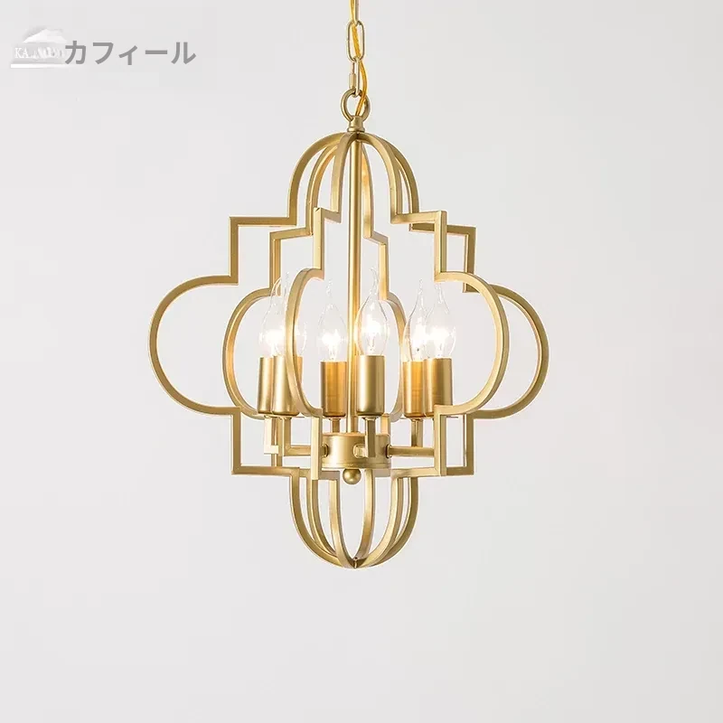 カフィール レストラン用シャンデリア 鉄製デザインのダイニングテーブルランプ - 銅ゴールドの透かし彫りで、書斎やクローゼット、寝室にぴったりのアメリカンスタイルシャンデリア!