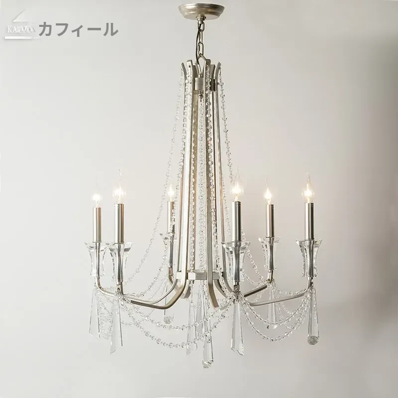 アメリカンカントリー風シャンデリア - おしゃれなリビングやダイニングにぴったり!フレンチスタイルの個性派デザイン、レトロなシルバー仕上げで、寝室や書斎に華やかな水晶の輝きをプラスします。
