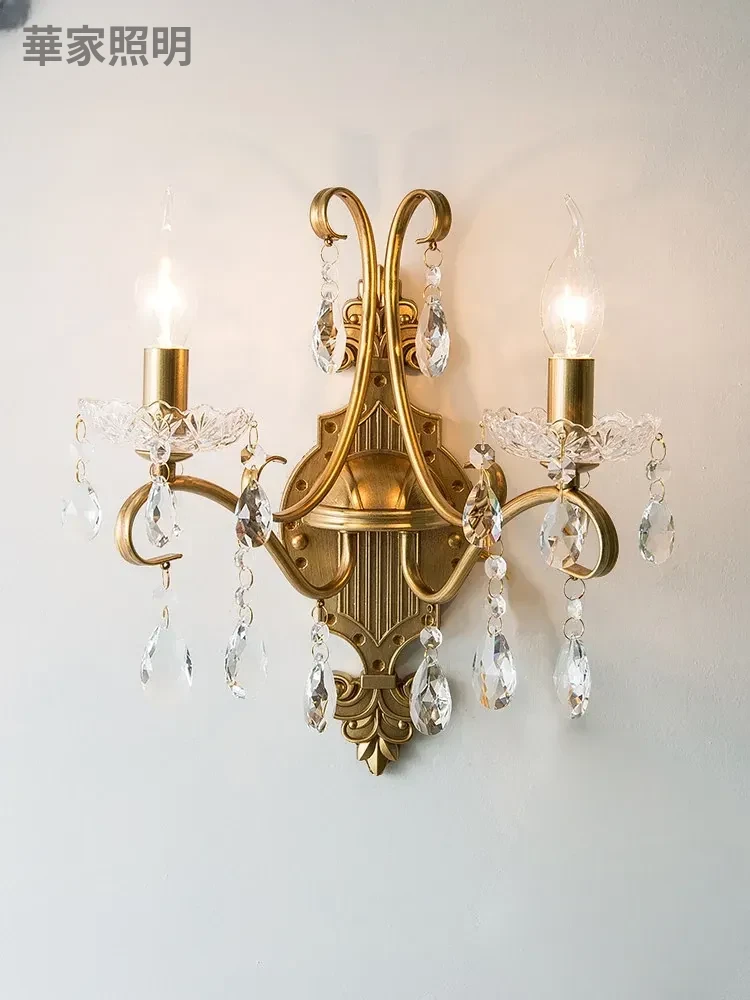 アメリカン・フレンチスタイルのレトロなアイアン製ベッドサイドウォールランプ!創造的な背景壁装飾にも最適なクリスタルウォールライト。寝室や廊下、リビングルームを華やかに演出します。