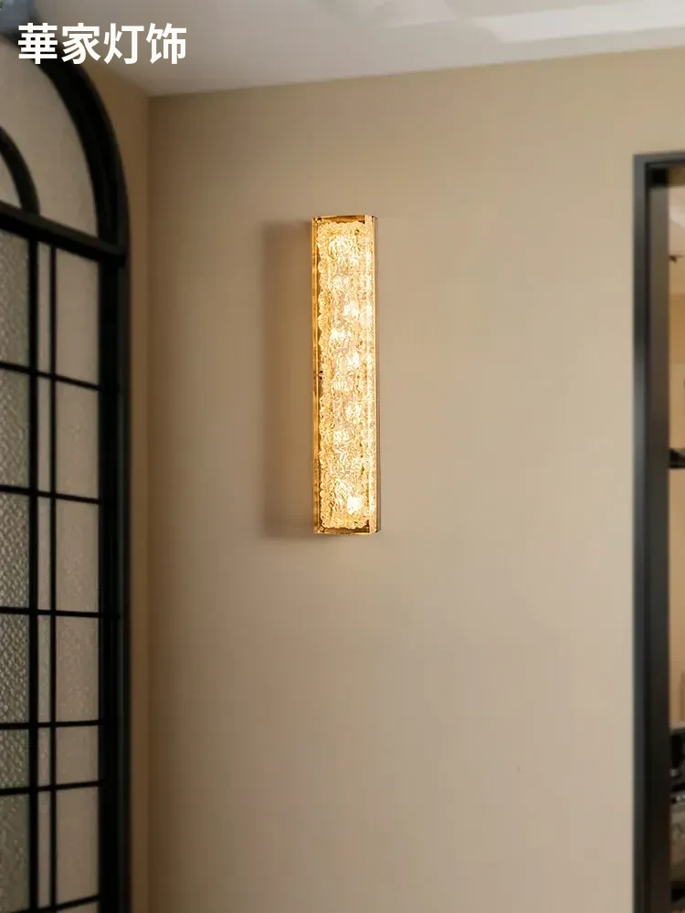 軽奢全銅クリスタル壁灯|モダンでシンプルなデザインの寝室用ベッドサイドライト|ラグジュアリーで洗練されたリビングルームやテレビ背景壁にぴったり!