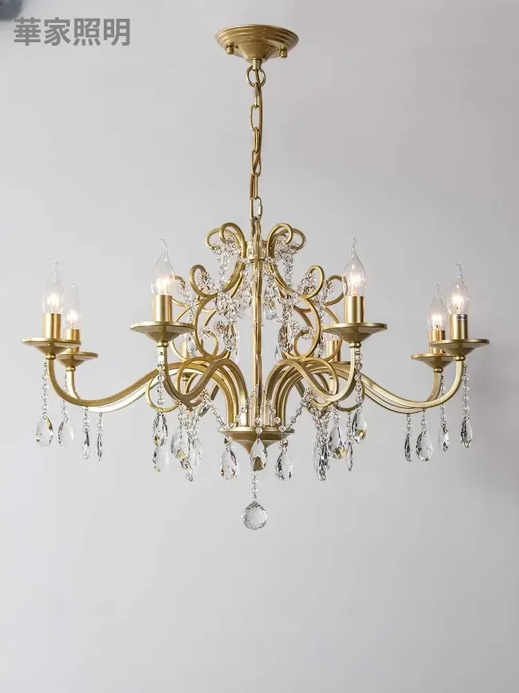 フランス風クリスタルシャンデリア|リビング・ダイニング・寝室に最適|モダンアメリカン・ラグジュアリーな高級感|全銅製シャンデリアで空間を華やかに演出!