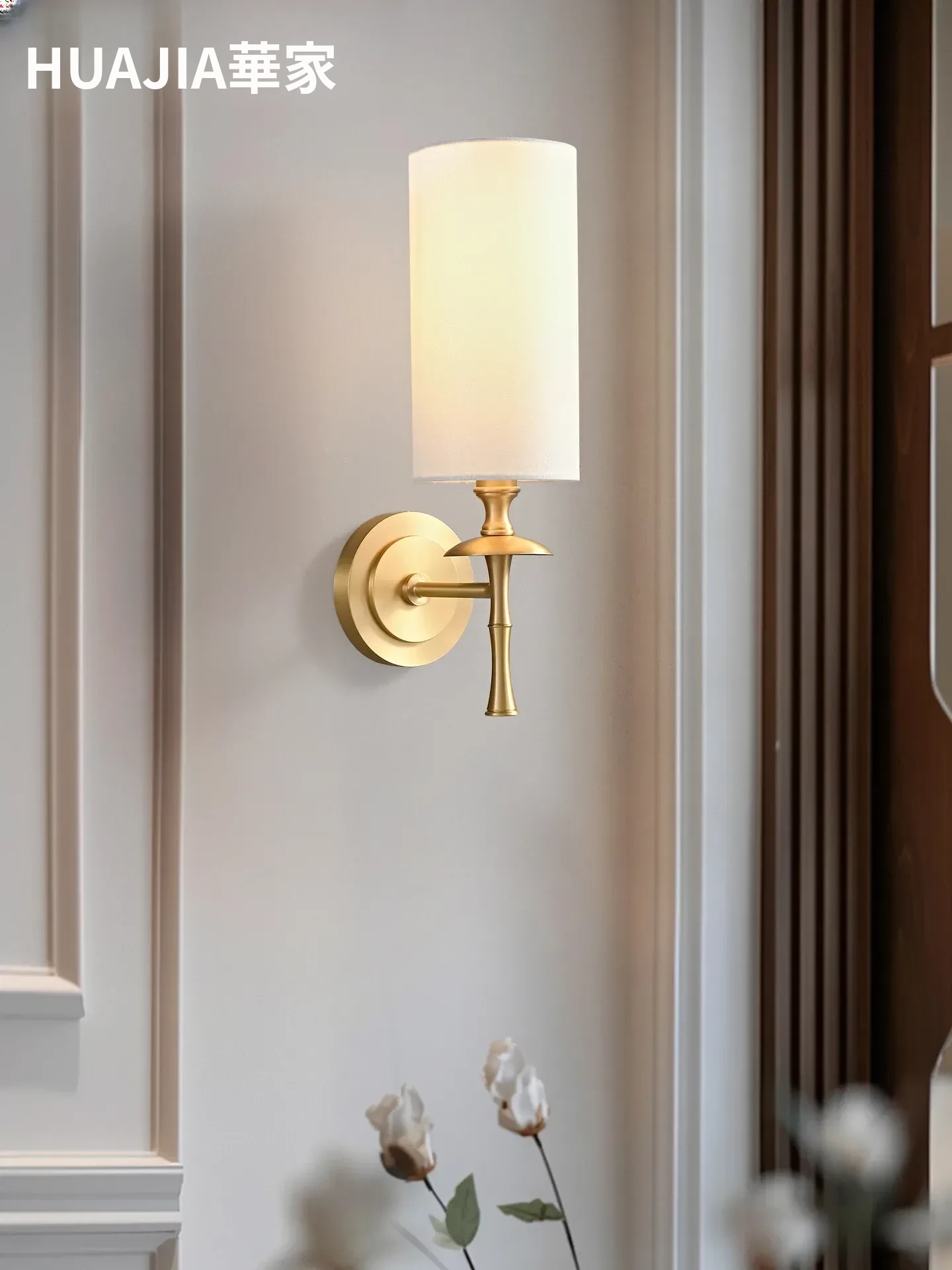 アメリカンレトロ全銅壁灯 - ラグジュアリーなシンプルデザインの寝室用ベッドサイドランプ、別荘にぴったりな高級感あふれる廊下・階段照明!