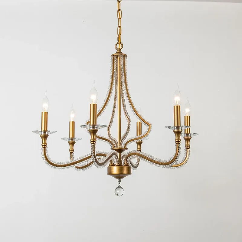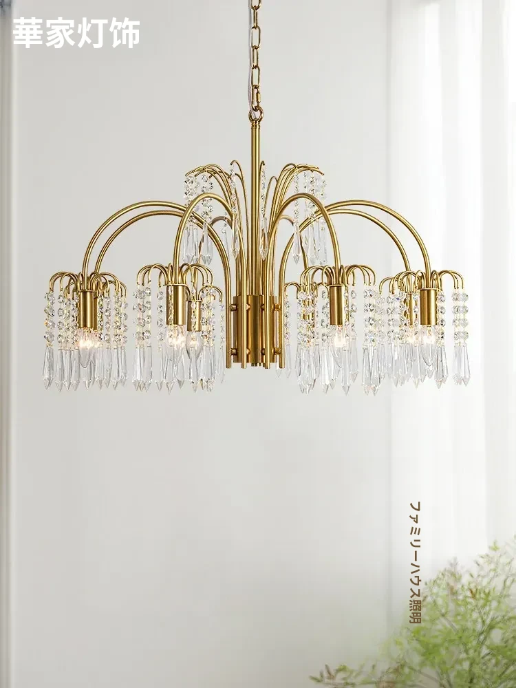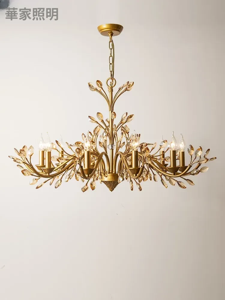 アメリカンスタイル全銅クリスタルシャンデリア - リビングや寝室にぴったりのフレンチクリスタルライト。シンプルでありながらレトロでエレガントな高級感を演出する、軽やかなラグジュアリー照明。